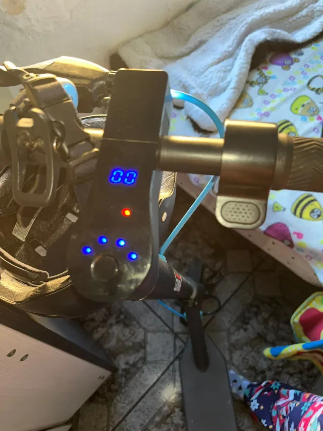 Detalles del productoPatinete eléctrico con pantalla digital y luces indicadoras.