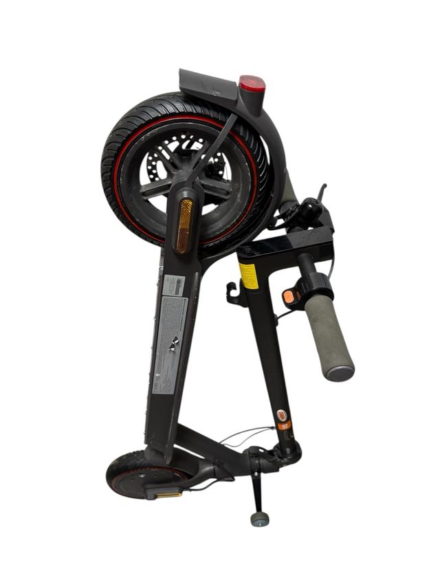 Detalles del productoPatinete eléctrico en color negro, diseñado para ser plegable y fácil de transportar.