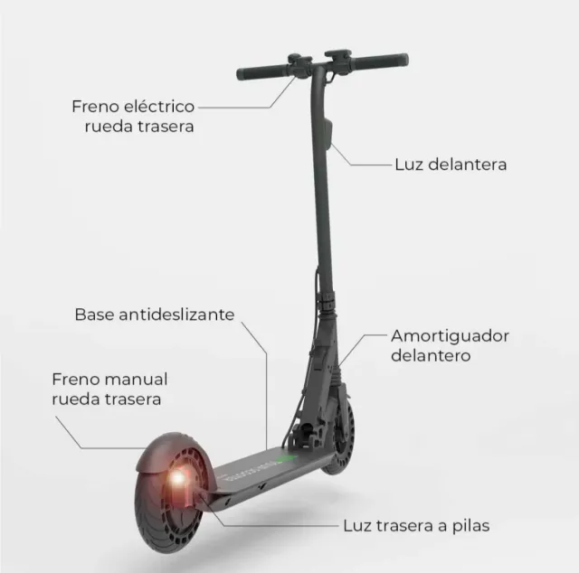 Ángulo máximo de escalada aprox. 15° Pliegue mecánico, base antideslizante. Timbre incluido, amortiguador delantero, Material aleación de aluminio