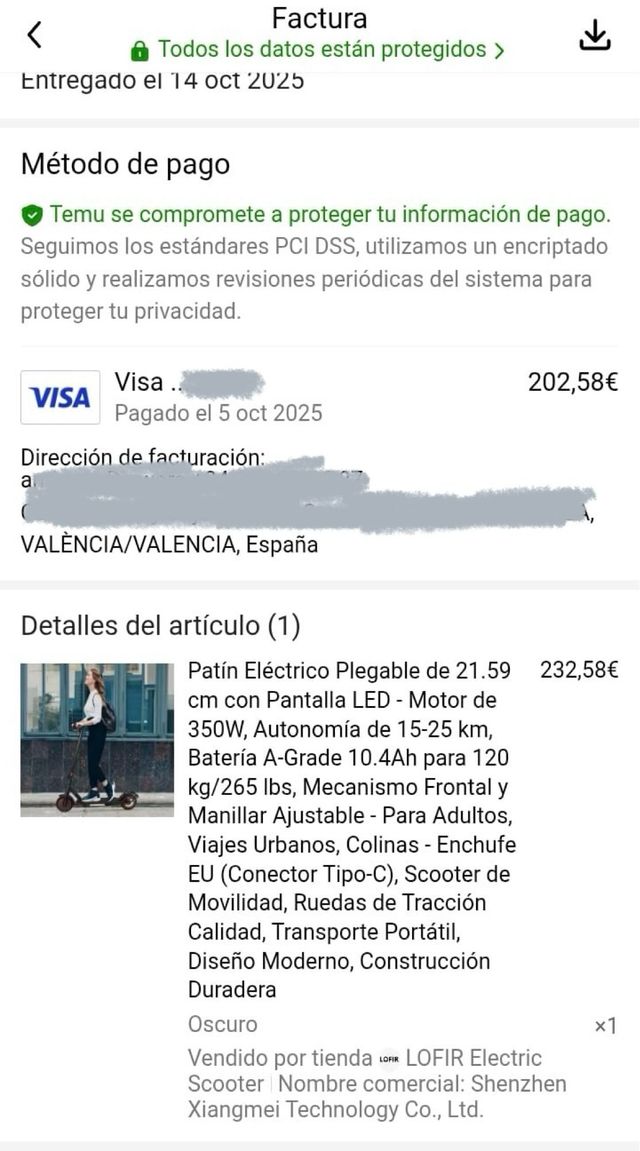 Detalles del productoPatinete eléctrico plegable de color oscuro, ideal para desplazamientos urbanos.