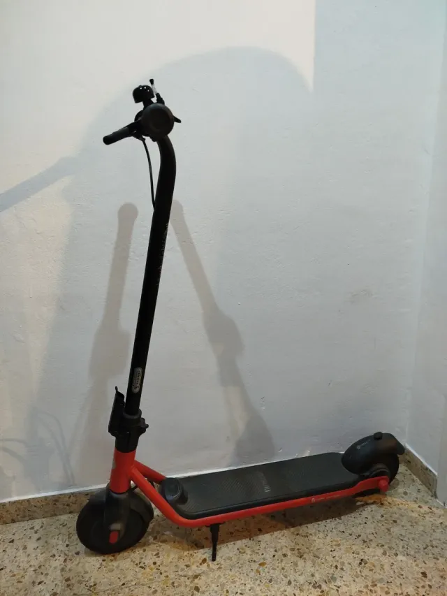Patinete eléctrico de color rojo y negro. Muy poco uso Marca: Ninebot - Manillar con timbre. - Plataforma antideslizante. - Ruedas negras.