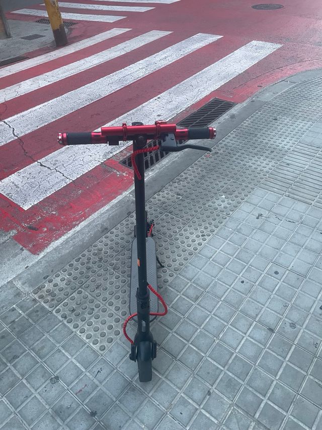 Detalles del productoPatinete eléctrico con manillar rojo y detalles en negro.