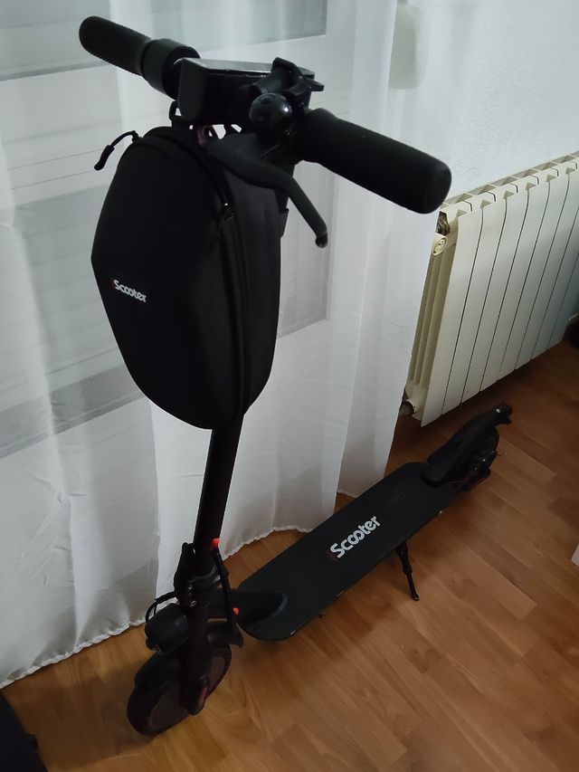 Patinete eléctrico marca Scooter en color negro. Incluye una bolsa frontal. - Bolsa frontal negra con logo Scooter. - Diseño plegable.