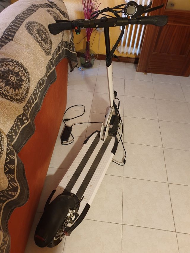 Detalles del productoPatinete eléctrico Skateflash en color blanco y negro seminuevo, usado pero bien conservado para quien lo quiera para piezas.