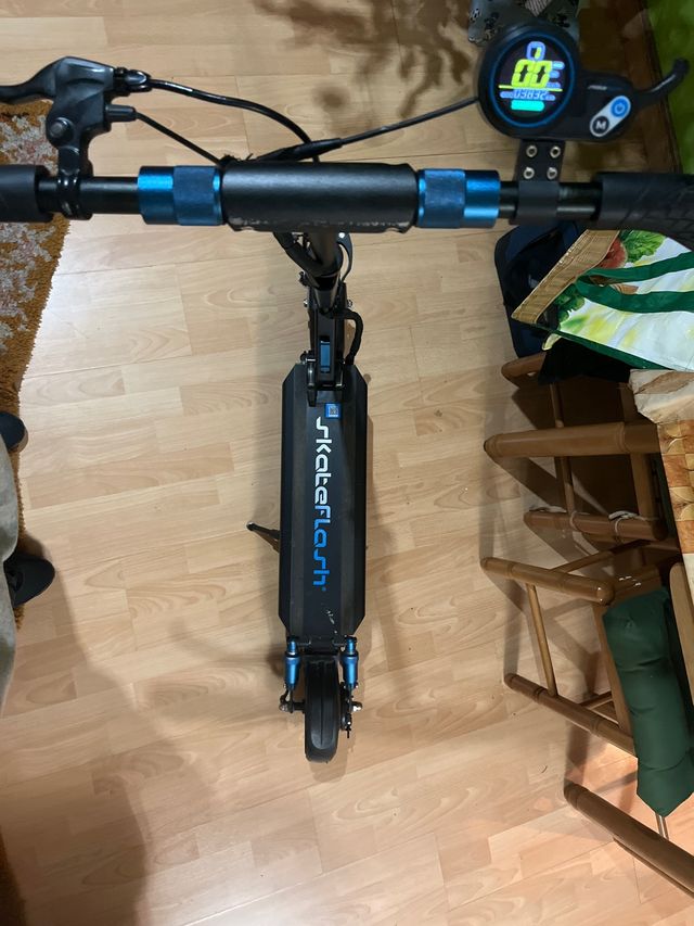 Detalles del productoPatinete eléctrico Skateflash en color negro y azul.