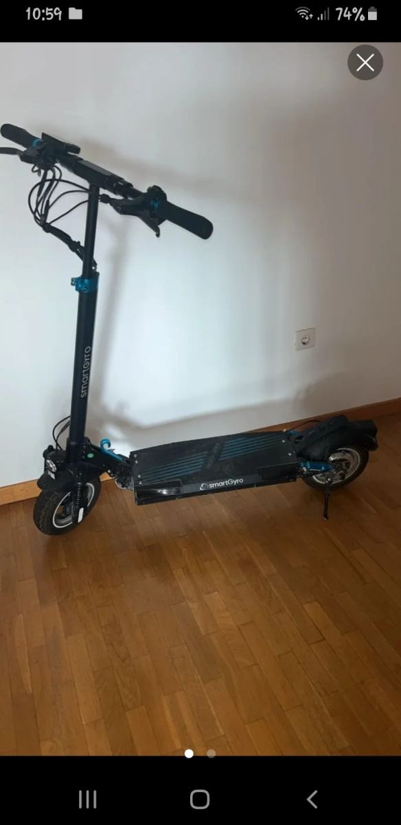 Detalles del productoPatinete eléctrico SmartGyro en color negro con detalles en azul. Con una autonomía superior a 50km. Menos de 350km de uso.