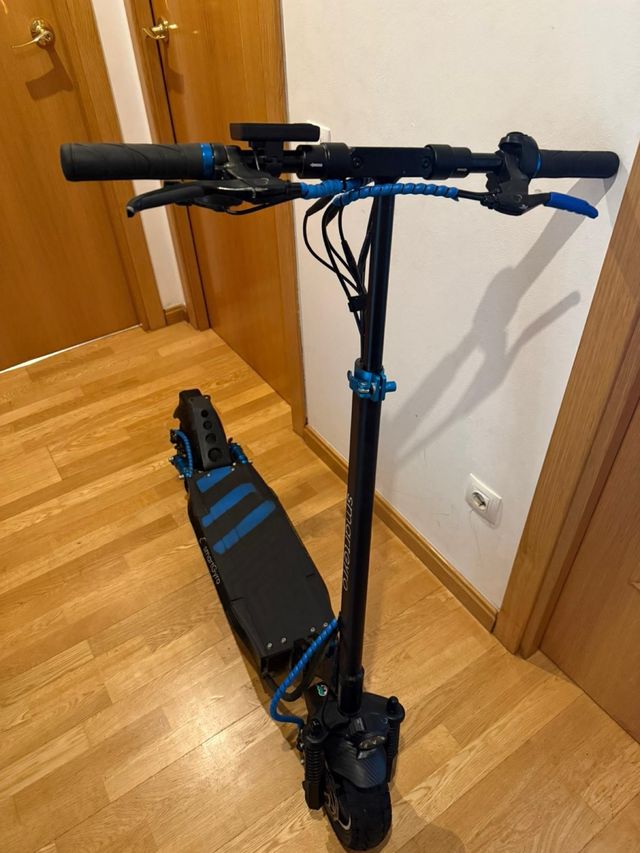 Detalles del productoPatinete eléctrico Smartgyro en color negro con detalles en azul. Ideal para desplazamientos urbanos.
