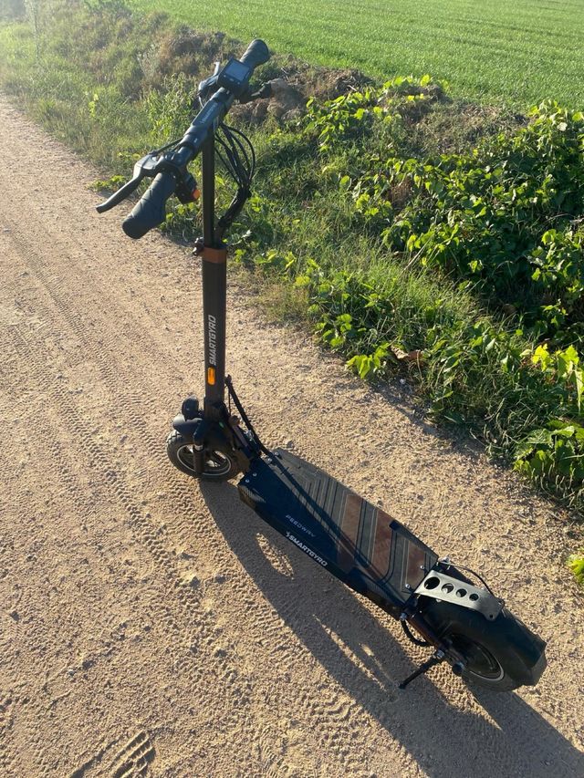 Detalles del productoPatinete eléctrico SmartGyro en color negro y detalles en marrón. Ideal para desplazamientos urbanos.