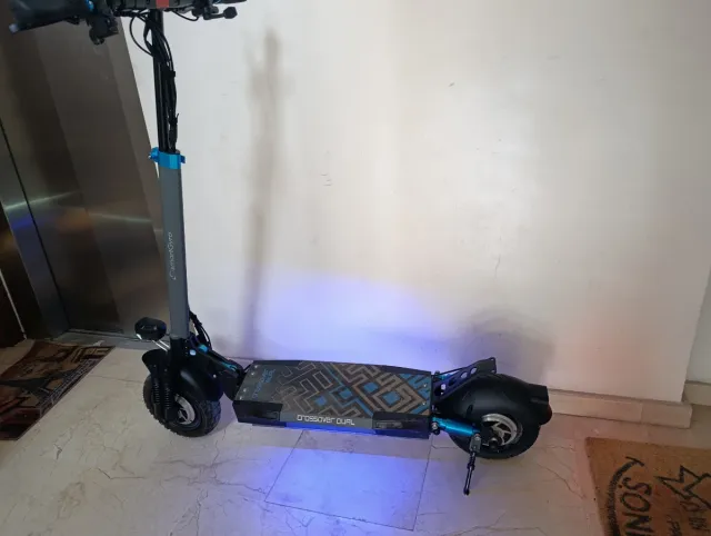 Detalles del productoPatinete eléctrico SmartGyro Crossover Dual con luces LED azules.