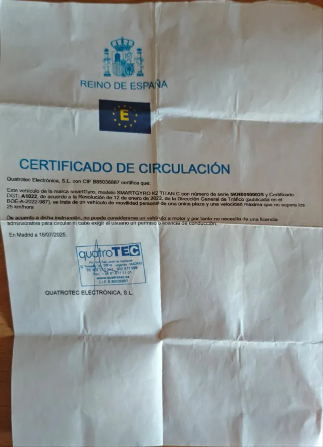 Patinete como nuevo comprado por 600€ el 16/07/2025 para trabajo como repartidor.