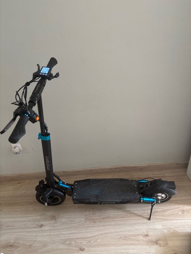 Detalles del productoPatinete eléctrico SmartGyro Rockway en color negro y detalles en azul.
