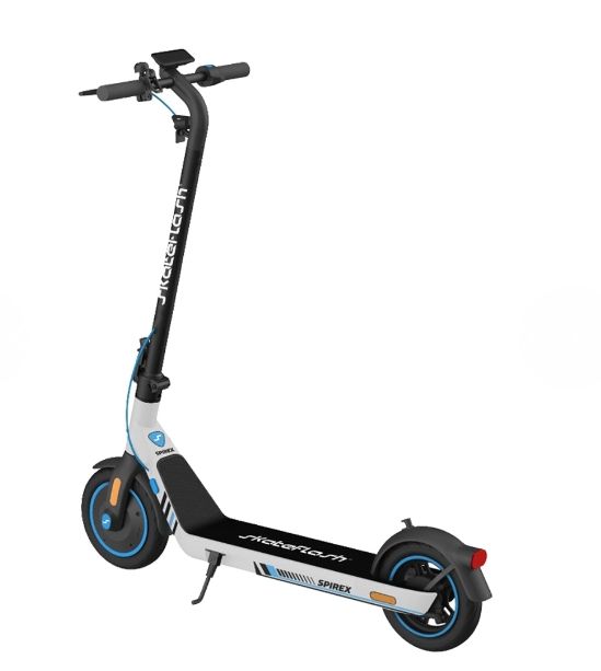 Detalles del productoPatinete eléctrico skate flash Spirex en color blanco y negro con detalles azules.