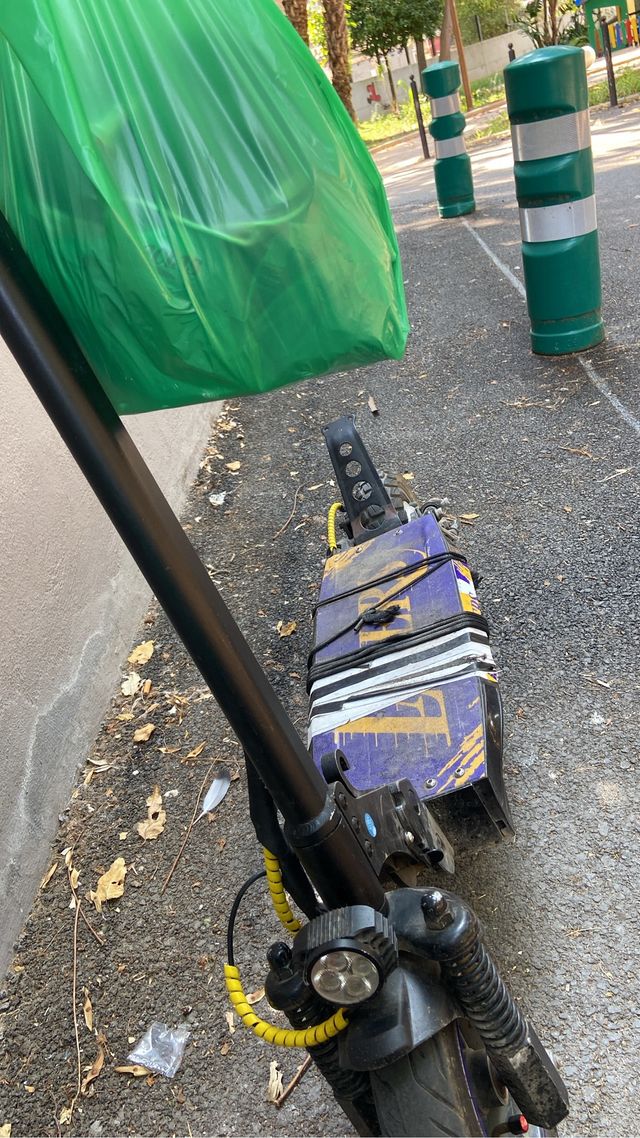 Patinete eléctrico en buenas condiciones, listo para usar. - Presenta algunos signos de uso. - El patinete está atado con cinta. - Incluye luz frontal.