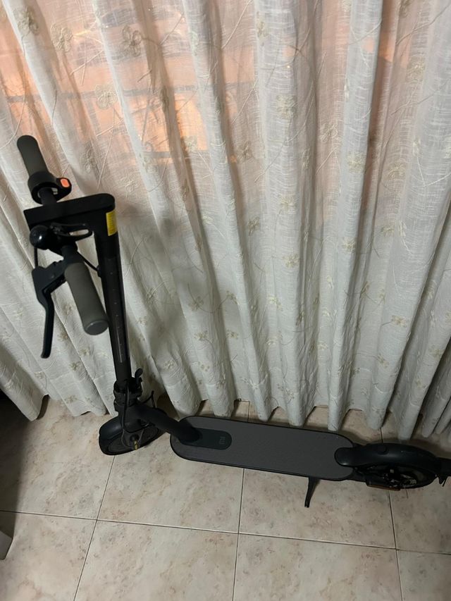 Detalles del productoPatinete eléctrico de color gris, ideal para desplazamientos urbanos. Diseño plegable para facilitar su transporte y almacenamiento.