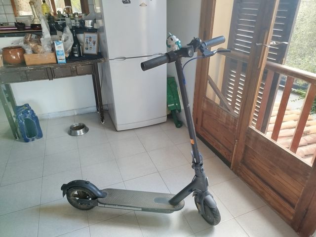 Patinete electrico tiene 3 años mas a menos, utilisado a veces, functiona a la perfection, la bateria aguanta dias, tengo rueda de recambio y luz atras de recambio, todo functiona bien, viene con casco.