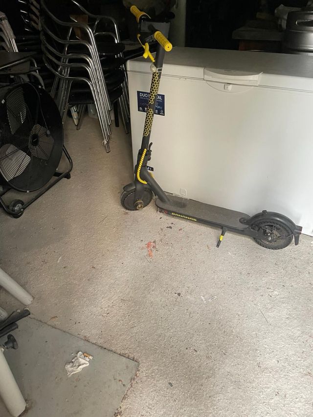 Detalles del productoPatinete eléctrico Xiaomi con diseño moderno y detalles en amarillo y negro.