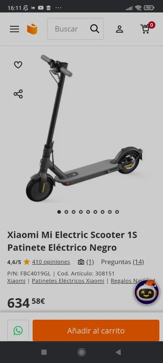 Detalles del productoPatinete eléctrico Xiaomi Mi Electrico Scooter 1S en color negro.