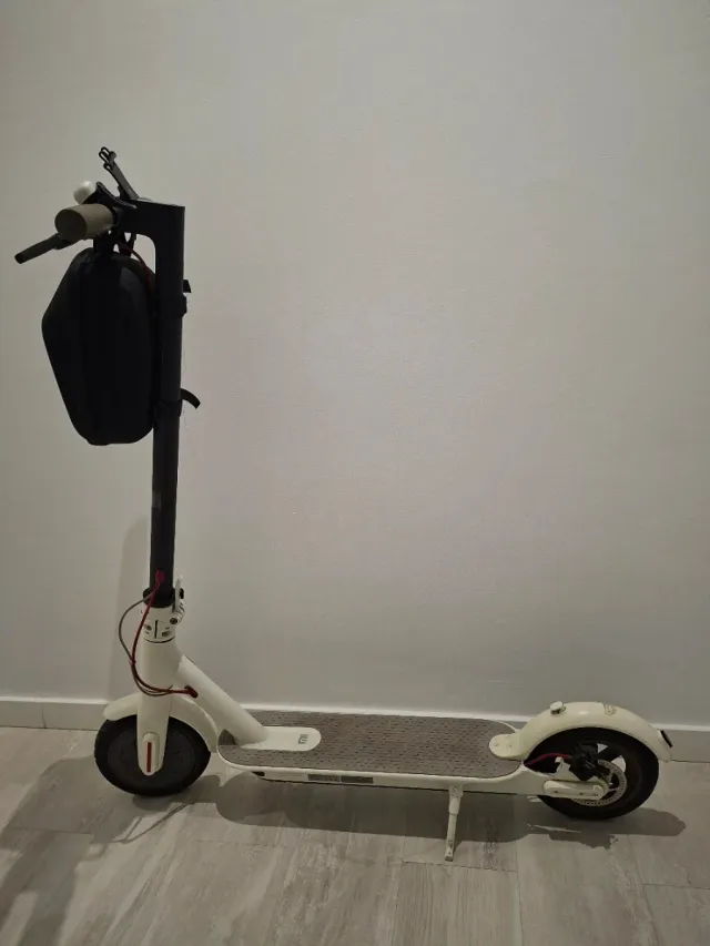 Patinete eléctrico Xiaomi en color blanco. Ideal para desplazamientos urbanos. - Diseño moderno y funcional. - Ruedas resistentes. - Manillar ajustable.