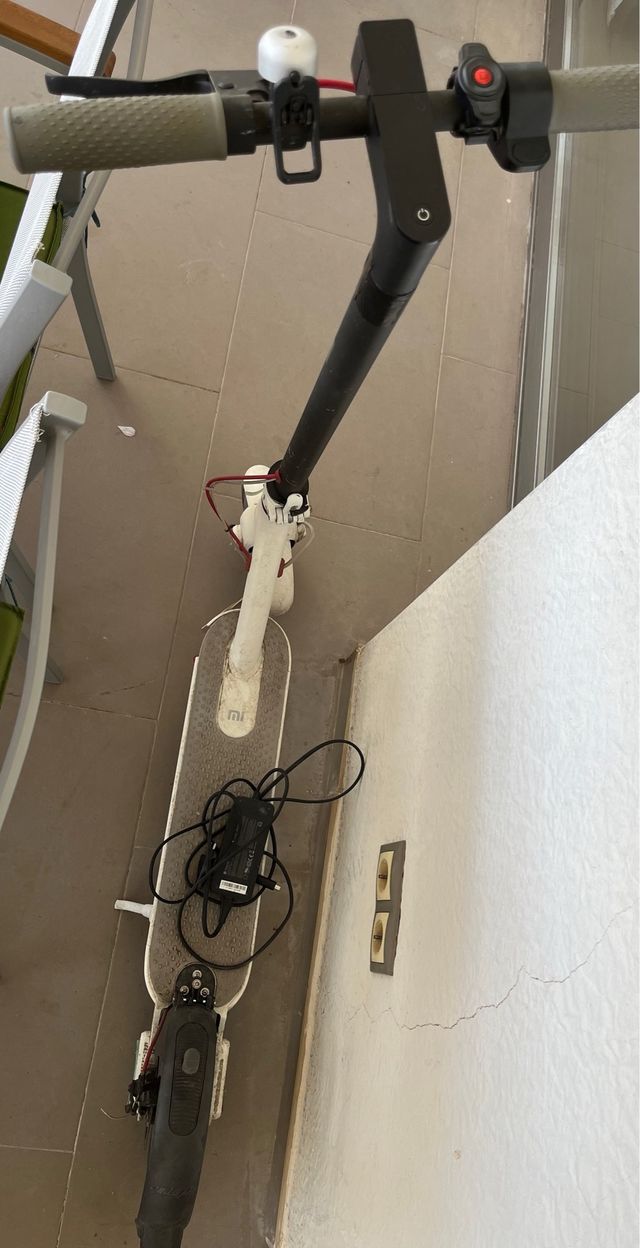 Patinete eléctrico Xiaomi, ideal para quienes disfrutan de las reparaciones o buscan piezas. - Modelo Xiaomi. - Color blanco y negro. - Incluye cargador.