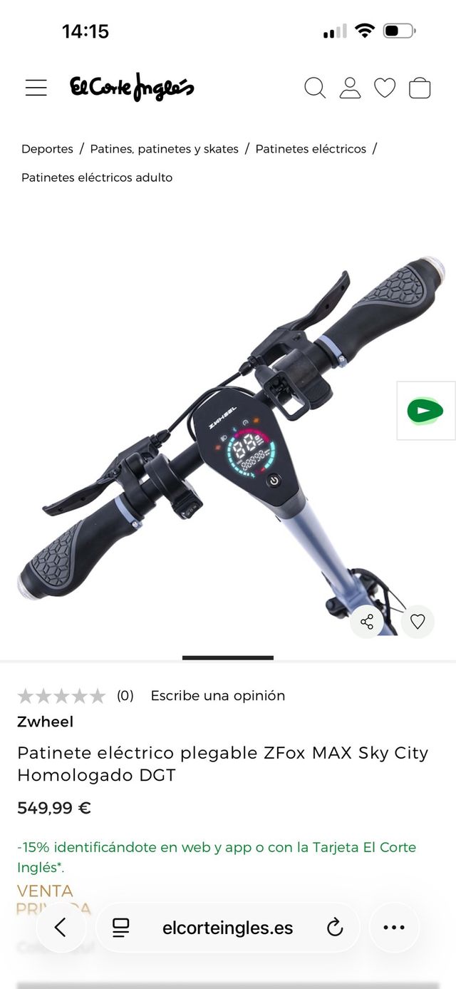 Patinete eléctrico plegable ZFox MAX Sky City homologado DGT. - Color: azul y negro - Pantalla digital con información de velocidad y batería. - Frenos de disco.
