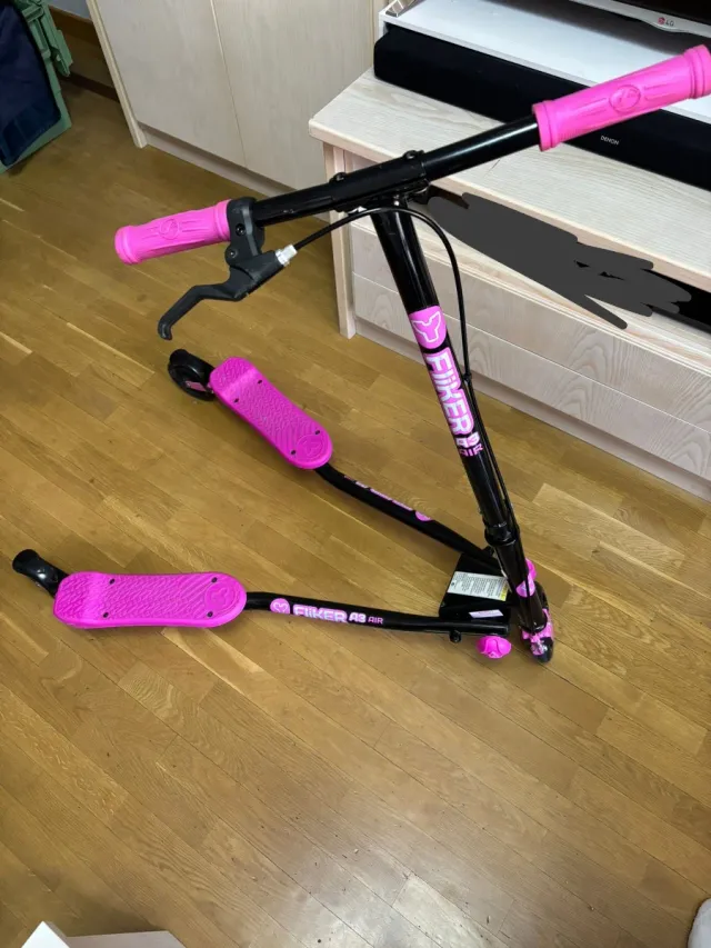 Patinete de tres ruedas Fliker A3 Air en color rosa y negro. - Manillar ajustable. - Plataformas antideslizantes. - Ruedas de poliuretano.