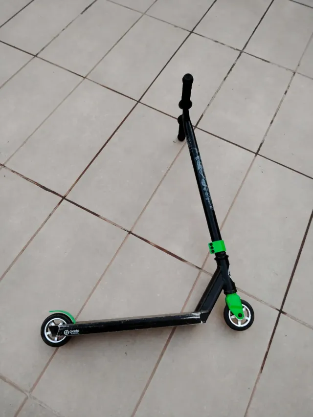 Detalles del productoPatinete de estilo freestyle en color negro con detalles en verde.