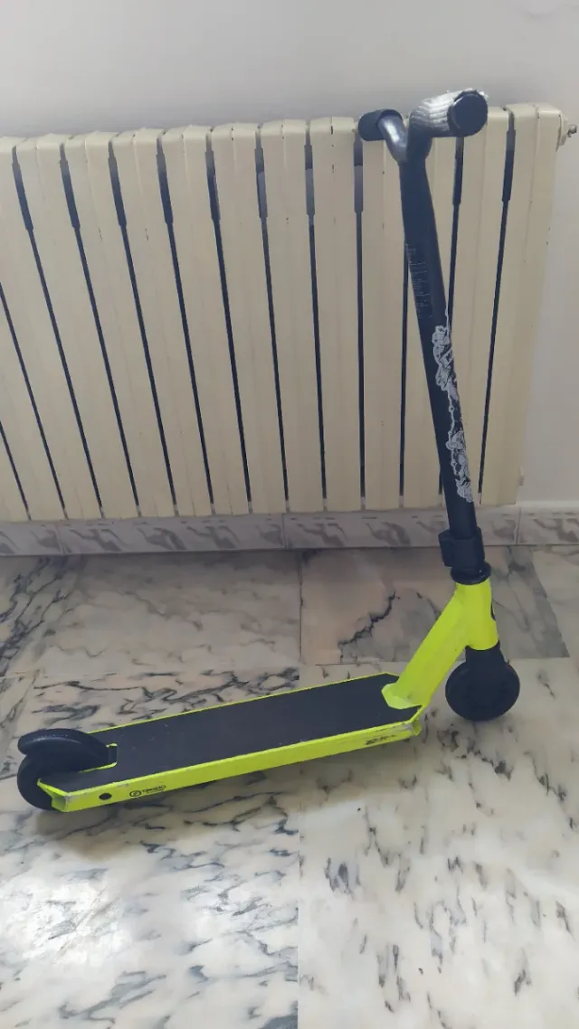 Patinete de freestyle Oxelo en color verde lima y negro. - Plataforma antideslizante. - Ruedas negras. - Manillar negro con puños.