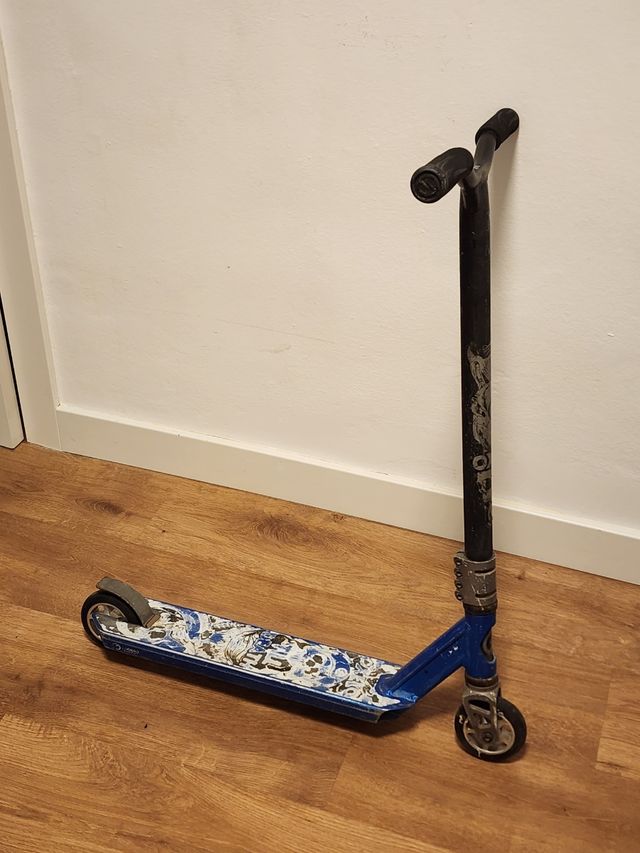 Detalles del productoPatinete freestyle de la marca Oxelo, como se puede observar, está muy desgastado de allí el precio, pero no afecta en su funcionamiento, es estético más que nada, los cojinetes y freno funcionan perfectamente.