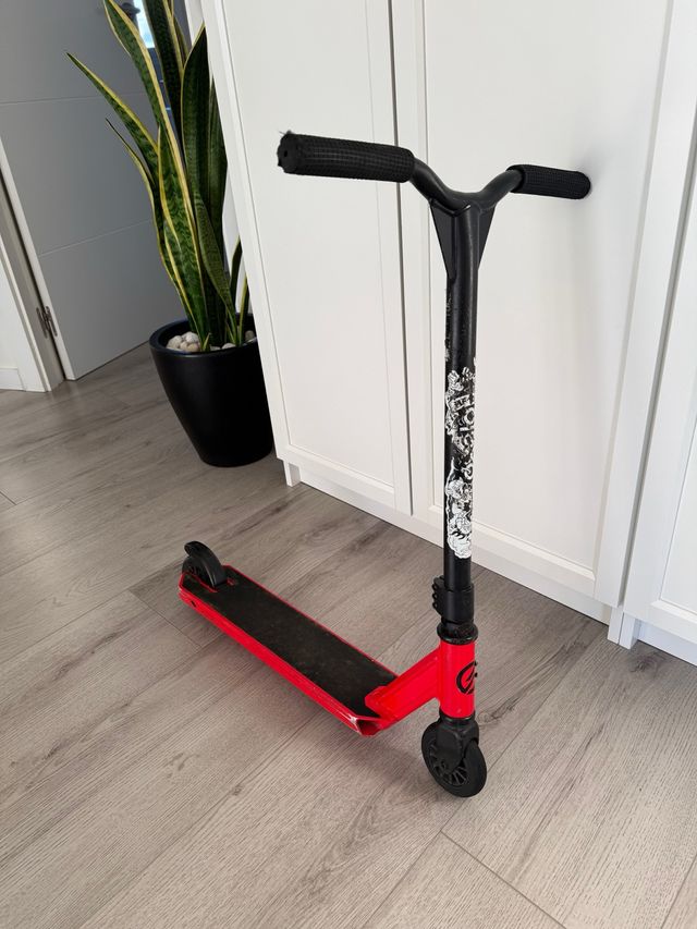 Patinete de estilo libre en color rojo de Decathlon OXELO - Manillar negro con puños texturizados. - Plataforma de patinaje en rojo. - Ruedas negras en perfecto estado