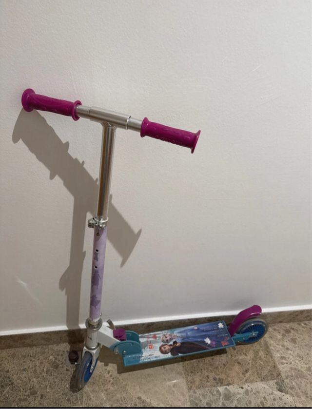 Detalles del productoPatinete infantil con diseño de Frozen, ideal para las pequeñas de la casa. Sus mangos son de color morado y la base tiene un estampado de las protagonistas.