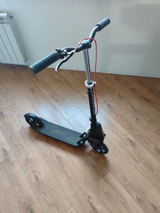 Patinete con freno. Para adultos y niños, plegable y con pata de cabra. Está en buen estado, con algo de desgaste pero funciona perfectamente.