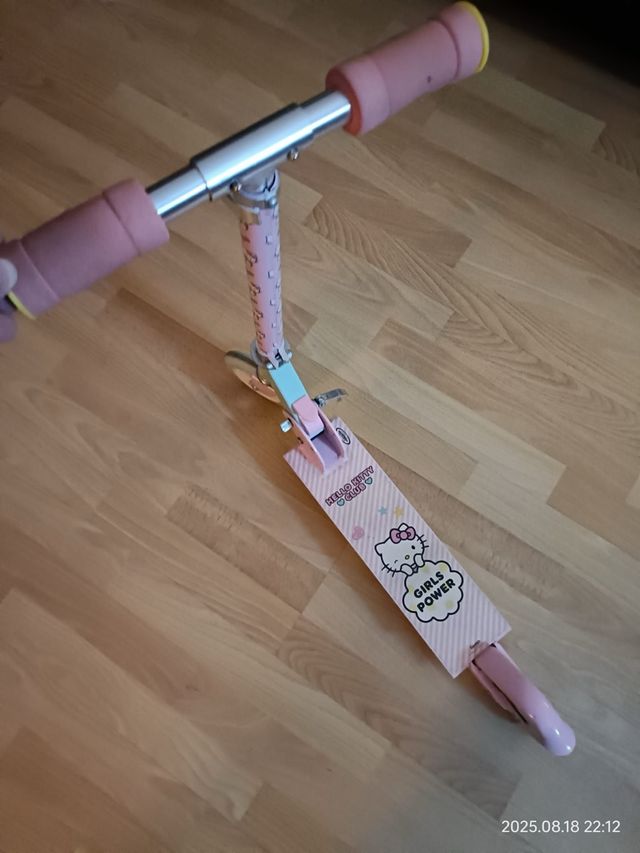 Detalles del productoPatinete infantil Hello Kitty en color rosa y detalles en tonos pastel. Está en buen estado.