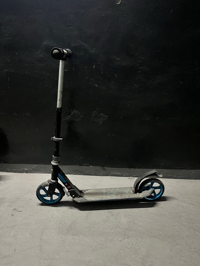 Patinete de dos ruedas para niños. - Manillar ajustable en altura. - Ruedas de color azul. - Plataforma antideslizante.