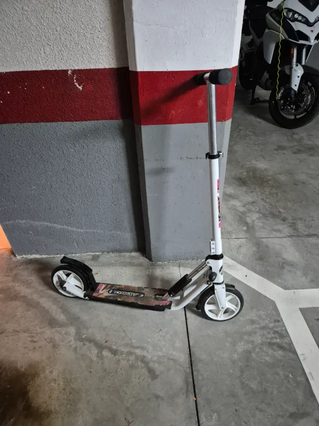 Patinete infantil de color blanco con detalles en rosa y negro. Ideal para los más pequeños. - Ruedas blancas. - Manillar ajustable. - Plataforma con diseño.