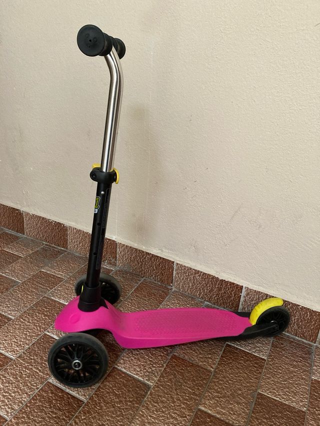 Detalles del productoPatinete infantil de tres ruedas en color rosa.