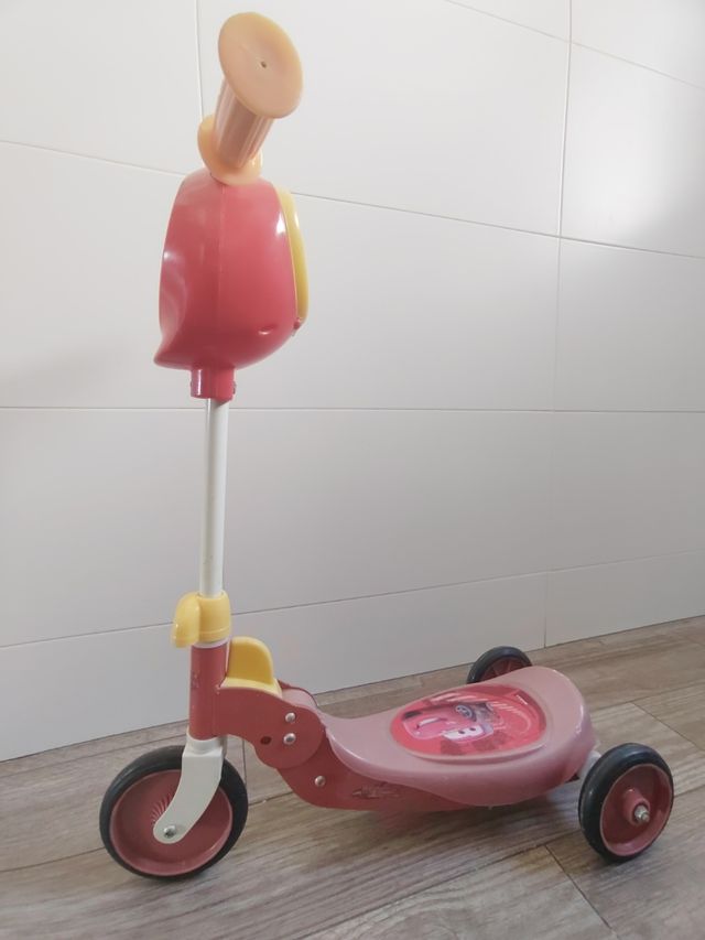 Patinete Rayo Macqueen de tres ruedas para niños. Robusto. Usado y algo descolorido en la base, pero en buen estado.