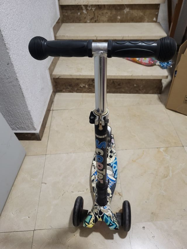 Patinete de tres ruedas en buen estado, ideal para niños. - Diseño con estampado. - Tres ruedas para mayor estabilidad.