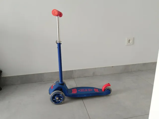 Detalles del productoPatinete de tres ruedas en color azul con detalles en rojo. Ideal para los más pequeños.