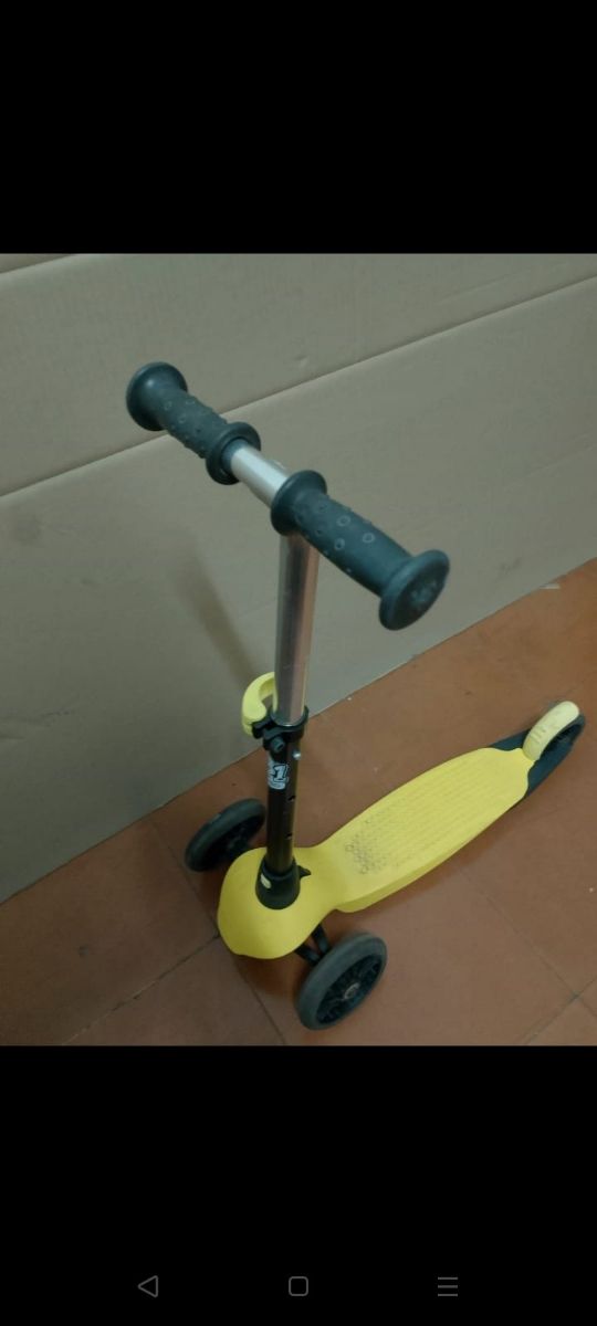 Patinete infantil tres ruedas (2 delanteras y 1 trasera) plástico y acero. Poco uso, prácticamente nuevo. Total funcionalidad.