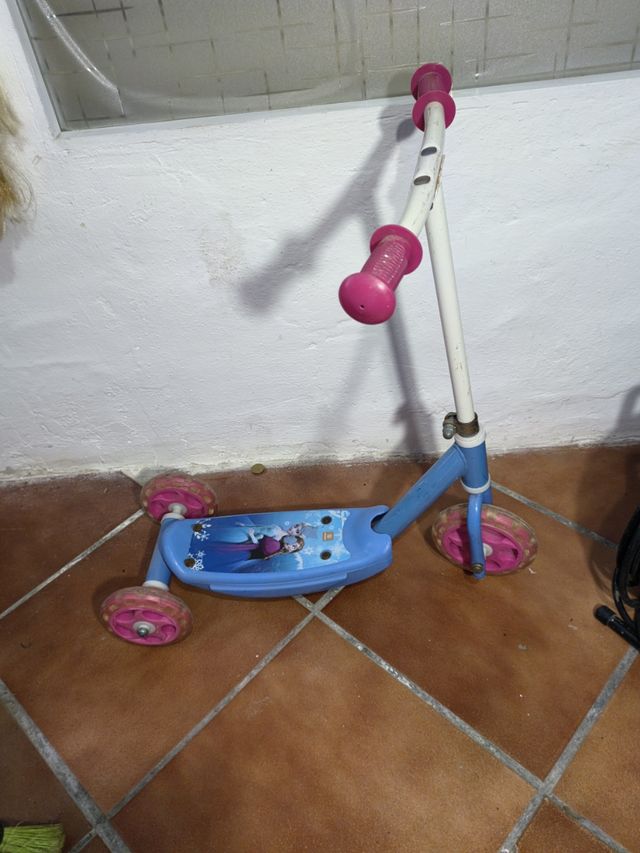 Detalles del productoPatinete infantil con diseño de Frozen, ideal para los más pequeños. Cuenta con tres ruedas para mayor estabilidad.