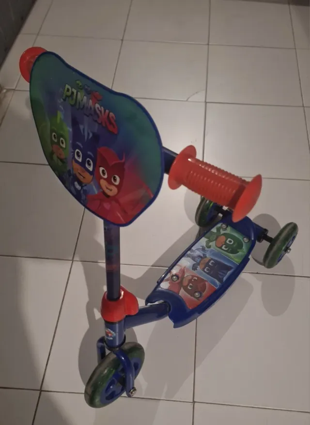 Detalles del productoPatinete de tres ruedas con diseño de los PJ Masks. Ideal para los más pequeños.