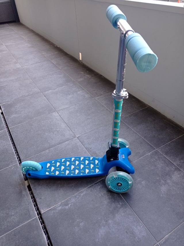 Detalles del productoPatinete infantil de tres ruedas, perfecto para los más pequeños. Su diseño es llamativo y divertido.