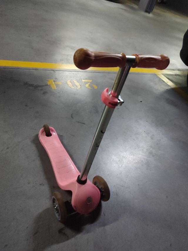 Detalles del productoPatinete de tres ruedas en color rosa, ideal para los más pequeños. Cuenta con manillar ajustable y ruedas que giran suavemente.