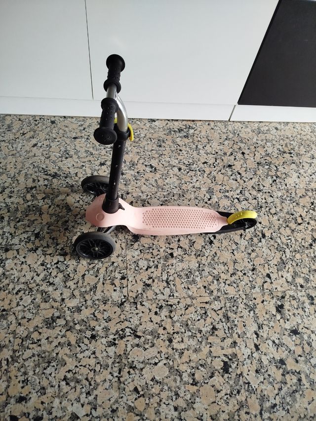 Patinete de tres ruedas en color rosa, ideal para los más pequeños. - Plataforma antideslizante. - Manillar ajustable en altura.