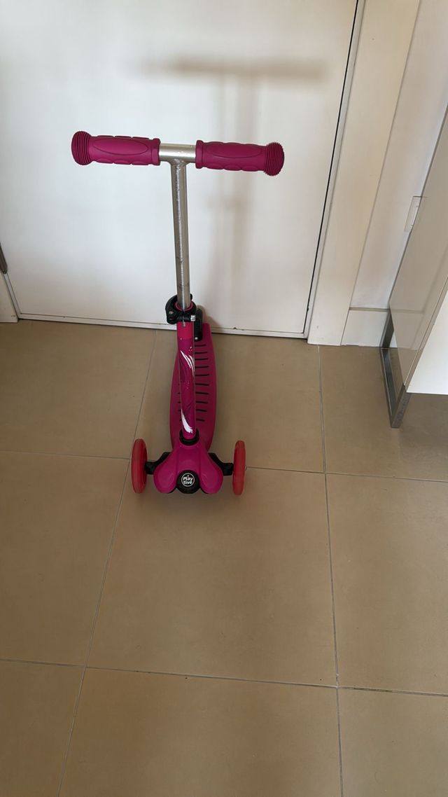 Detalles del productoPatinete de tres ruedas en color rosa, ideal para los más pequeños. Diseñado para ofrecer estabilidad y diversión.