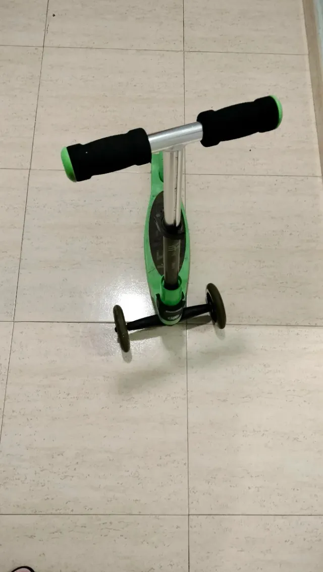 Detalles del productoPatinete de tres ruedas en color verde, perfecto para los más pequeños.
