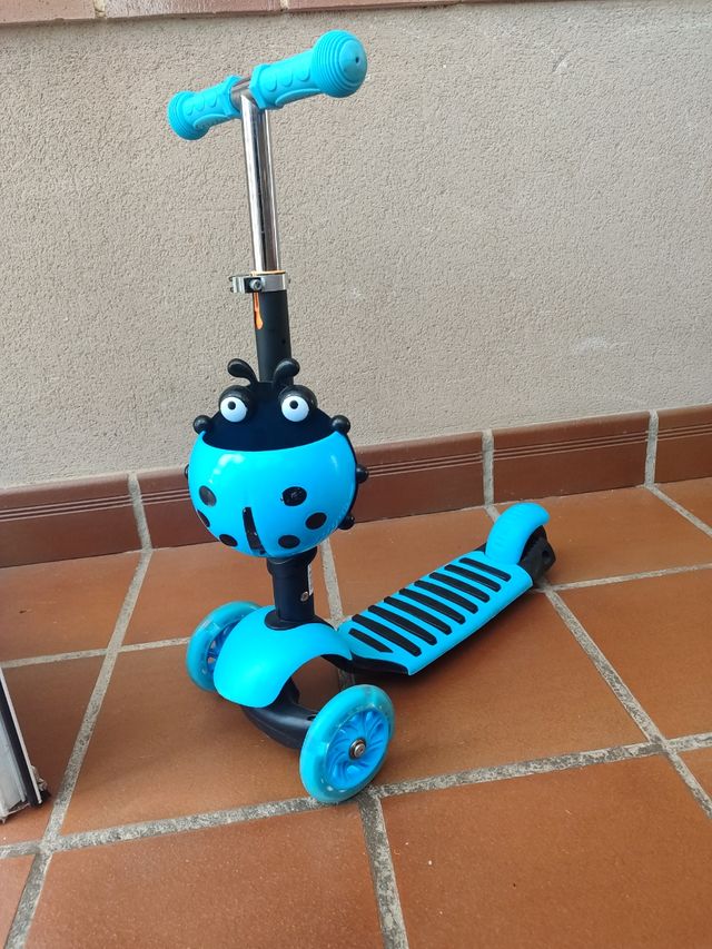 Patinete infantil azul con diseño de mariquita