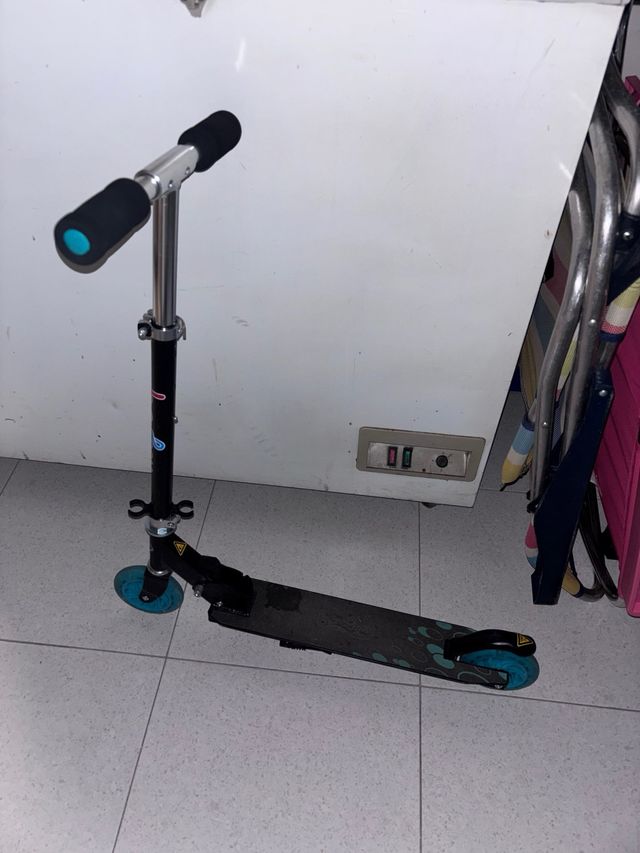 Patinete infantil con ruedas azules, se iluminan
