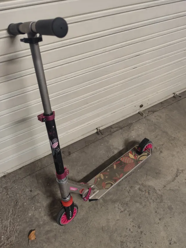 Patinete infantil con un diseño divertido y colorido. Ideal para paseos. - Ruedas de color rosa. - Manillar ajustable. - Plataforma con estampado.
