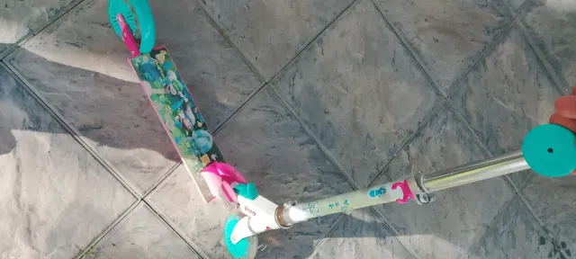 Detalles del productoPatinete infantil con un diseño colorido y divertido. Se encuentra en buen estado, listo para usar.